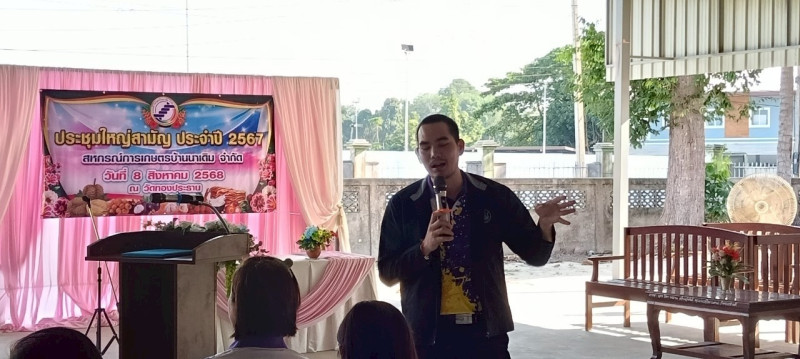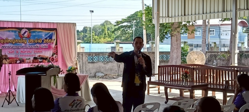 วันที่ 8 สิงหาคม 2568 นางสาวจิราภรณ์ คำบาง ผู้อำนวยการศูนย์ถ่ายทอดเทคโนโลยีการสหกรณ์ที่ 19 จังหวัดสุราษฎร์ธานี มอบหมายให้ นายณรงพิสิษฐ์ วรวิวัฒน์ นักทรัพยากรบุคคลชำนาญการ และนางสาวสุมิตรา วงศ์จริยะกิตติ นักทรัพยากรบุคคลปฏิบัติการ ร่วมประชุมใหญ่สามัญประจำปี 2567 สหกรณ์การเกษตรบ้านนาเดิม จำกัด กลุ่มเป้าหมายประกอบด้วยสมาชิกของสหกรณ์ จำนวน 486 คน โดยมีสมาชิกเข้าร่วมประชุมใหญ่จำนวน 340 คน ในโอกาสนี้ได้รับเกียรติจากนายนำชัย บัวทอง ผู้อำนวยการกลุ่มส่งเสริมสหกรณ์ 7 เป็นประธานในพิธีเปิด ณ วัดทองประธาน อำเภอบ้านนาเดิม จังหวัดสุราษฎร์ธานี