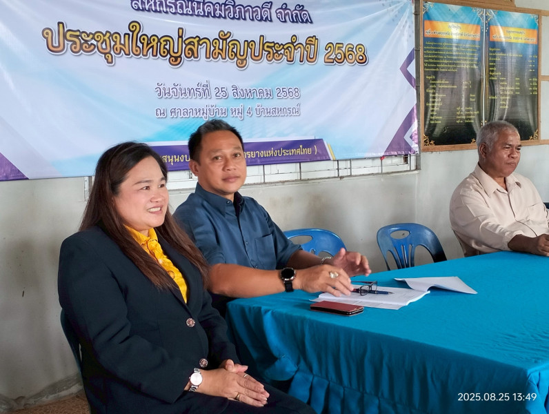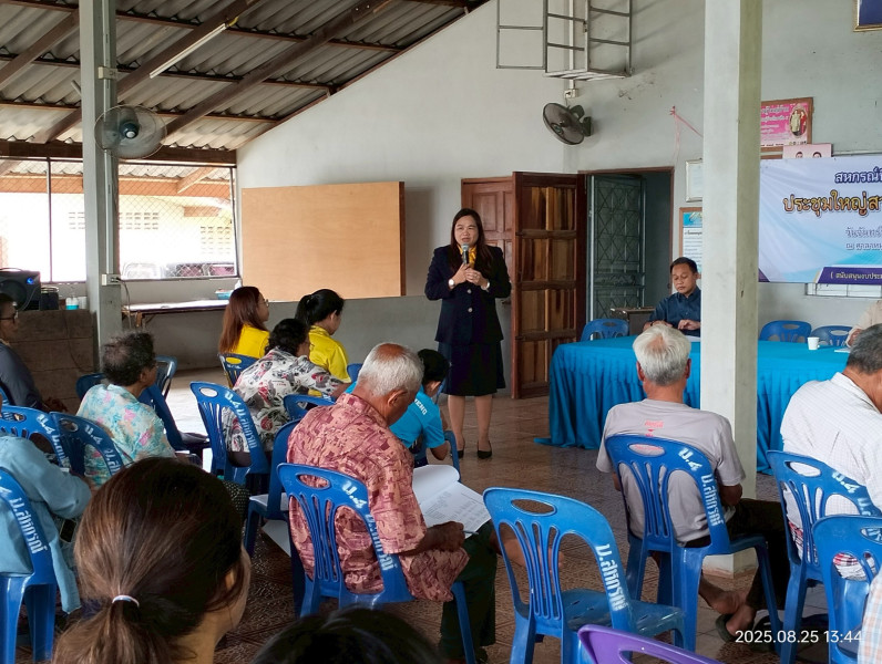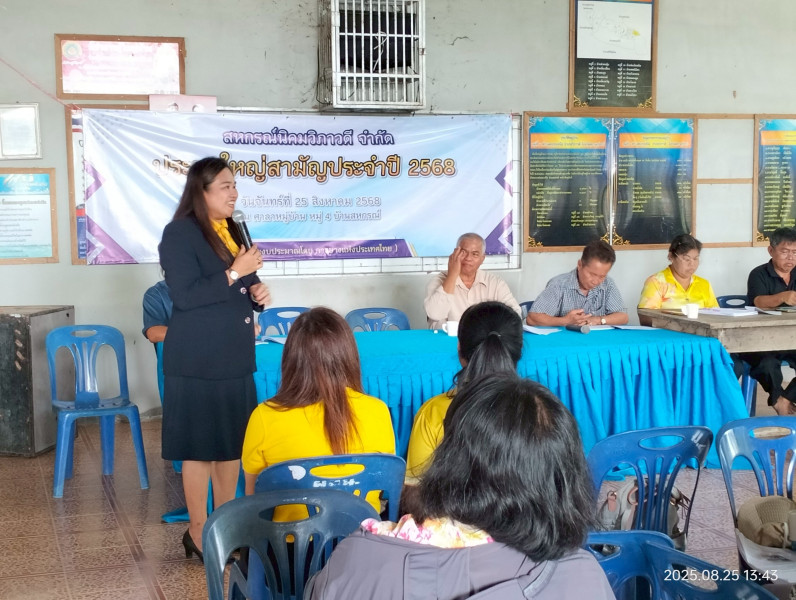 วันที่ 25 สิงหาคม 2568 นางสาวจิราภรณ์ คำบาง ผู้อำนวยการศูนย์ถ่ายทอดเทคโนโลยีการสหกรณ์ที่ 19 พร้อมด้วย นายณรงพิสิษฐ์ วรวิวัฒน์ นักทรัพยากรบุคคลชำนาญการ ร่วมประชุมใหญ่สามัญประจำปี 2567 และติดตามผลการดำเนินงานตามแผนงานภายใต้โครงการฝึกอบรม หลักสูตร “พัฒนาคณะกรรมการสหกรณ์เข้มแข็งทั้งคณะ” สหกรณ์นิคมวิภาวดี จำกัด ประจำปีงบประมาณ พ.ศ. 2566 มีสมาชิกเข้าร่วมประชุมใหญ่จำนวน 108 คน ณ ศาลาหมู่ 4 บ้านสหกรณ์ อำเภอวิภาวดี จังหวัดสุราษฎร์ธานี